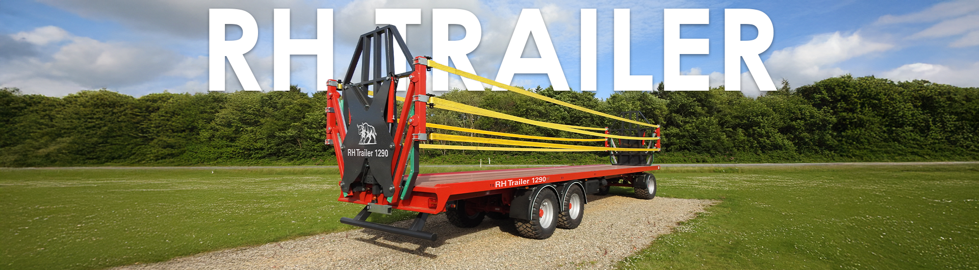Den største RH Trailer har 12,9 m ladflade. Den ses her med for og endegavl samt hydraulisk lastsikring, der køres nedad, når der læsses.