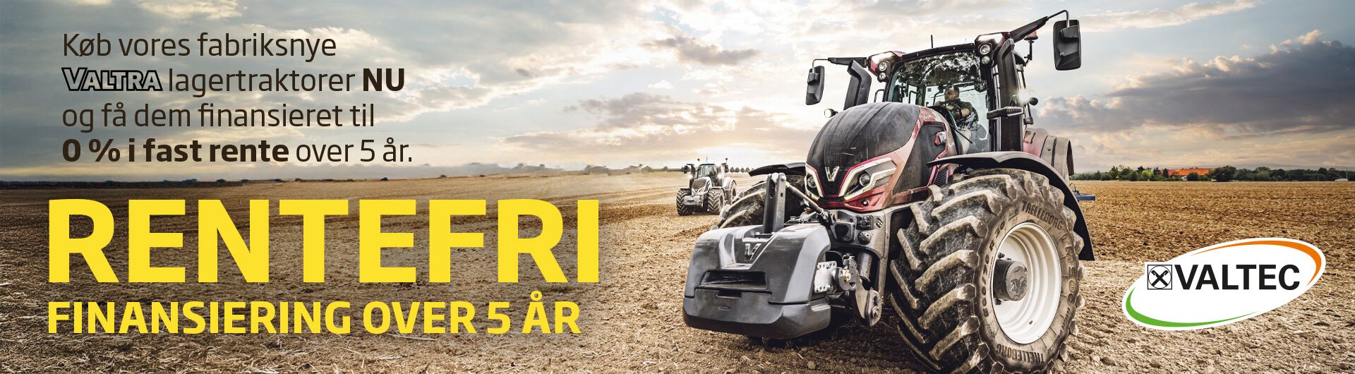 Køb vores fabriksnye Valtra lagertraktorer nu og få dem finansieret til o % i fast rente over 5 år.